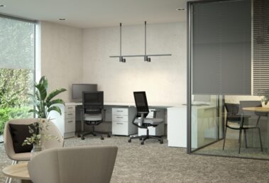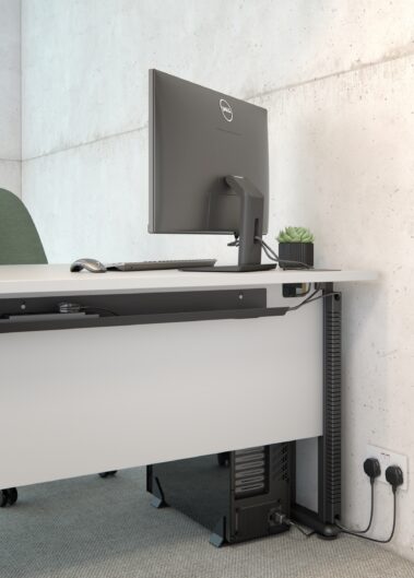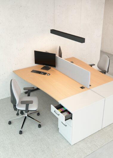 To help break up the working environment and provide users with an element of privacy, an optional desk-mounted fabric screen can be used to act as a division between personal workspaces.