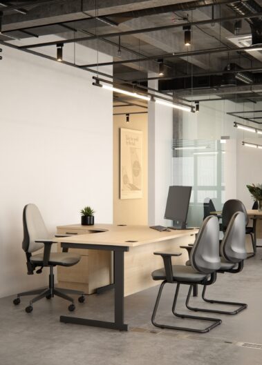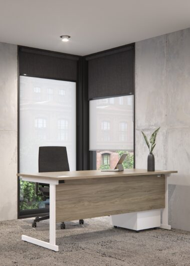 Alpha Standard delivers a contemporary solution offering a Rectangular, Crescent or Wave desk with a single upright cantilever frame and the option to add a cable management solutions.