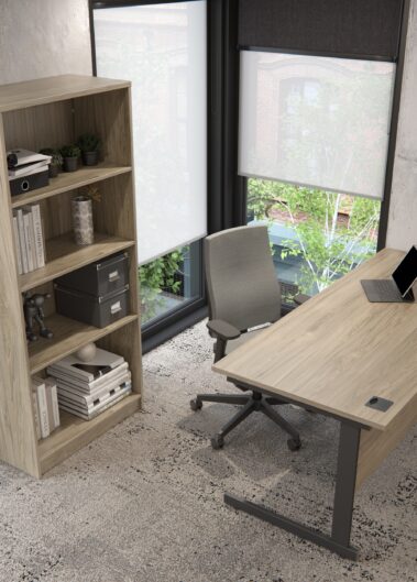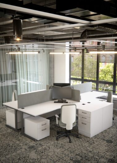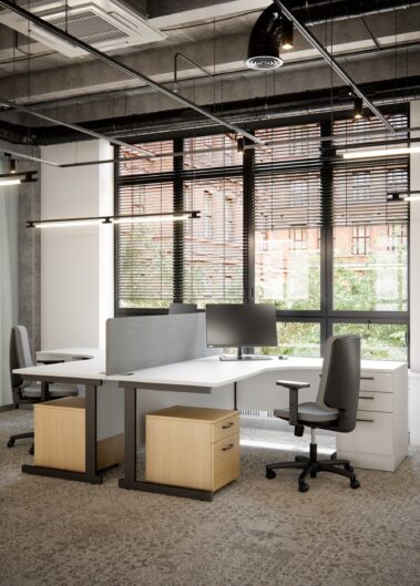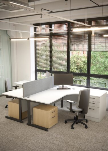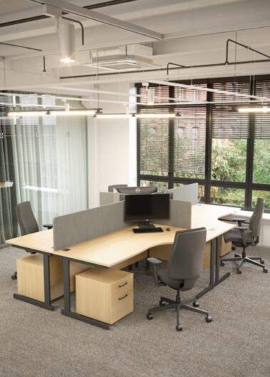 To help break up the working environment and provide users with an element of privacy, an optional desk-mounted fabric screen can be used to act as a division between personal workspaces.